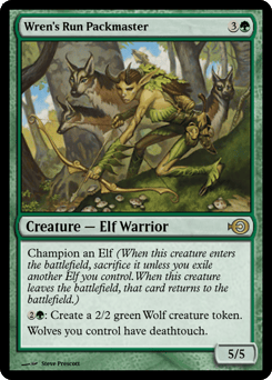 Champion an Elf (When this creature enters, sacrifice it unless you exile another Elf you control. When this creature leaves the battlefield, that card returns to the battlefield.) {2}{G}: Create a 2/2 green Wolf creature token. Wolves you control have deathtouch.