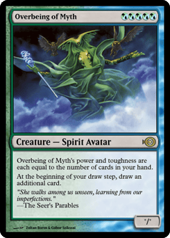 Overbeing of Myth's power and toughness are each equal to the number of cards in your hand. At the beginning of your draw step, draw an additional card.
