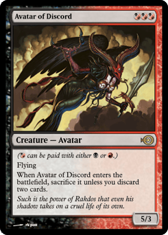 Flying When Malfegor enters, discard your hand. Each opponent sacrifices a creature of their choice for each card discarded this way.