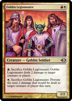 {R}, Sacrifice this creature: It deals 2 damage to any target. {W}, Sacrifice this creature: Prevent the next 2 damage that would be dealt to any target this turn.