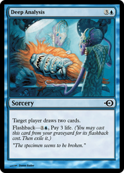 Target player draws two cards. Flashback—{1}{U}, Pay 3 life. (You may cast this card from your graveyard for its flashback cost. Then exile it.)