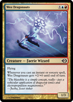 Flying Whenever you cast an instant or sorcery spell, this creature gets +2/+0 until end of turn.