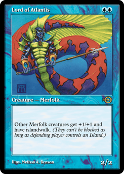 Other Merfolk get +1/+1 and have islandwalk. (They can't be blocked as long as defending player controls an Island.)