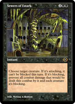 Choose target creature. If it's attacking, it can't be blocked this turn. If it's blocking, prevent all combat damage that would be dealt this combat by it and each creature it's blocking.
