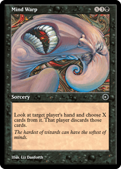 Look at target player's hand and choose X cards from it. That player discards those cards.