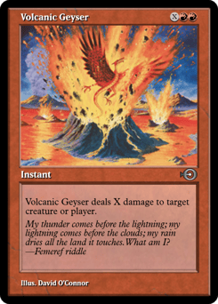 Volcanic Geyser deals X damage to any target.