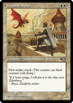 First strike; reach (This creature can block creatures with flying.)