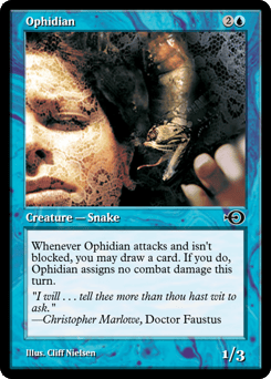Whenever this creature attacks and isn't blocked, you may draw a card. If you do, this creature assigns no combat damage this turn.