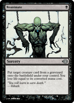 Put target creature card from a graveyard onto the battlefield under your control. You lose life equal to its mana value.