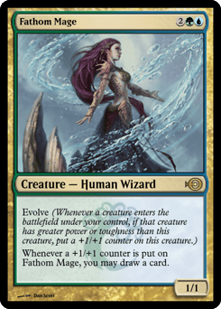 Evolve (Whenever a creature you control enters, if that creature has greater power or toughness than this creature, put a +1/+1 counter on this creature.) Whenever a +1/+1 counter is put on this creature, you may draw a card.
