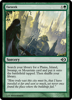 Search your library for a Plains, Island, Swamp, or Mountain card, put it onto the battlefield tapped, then shuffle.