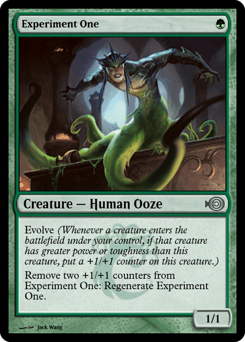 Evolve (Whenever a creature you control enters, if that creature has greater power or toughness than this creature, put a +1/+1 counter on this creature.) Remove two +1/+1 counters from this creature: Regenerate it. (The next time this creature would be destroyed this turn, instead tap it, remove it from combat, and heal all damage on it.)