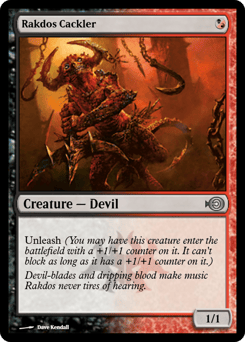 Unleash (You may have this creature enter with a +1/+1 counter on it. It can't block as long as it has a +1/+1 counter on it.)
