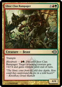 Trample Bloodrush — {R}{G}, Discard this card: Target attacking creature gets +4/+4 and gains trample until end of turn.