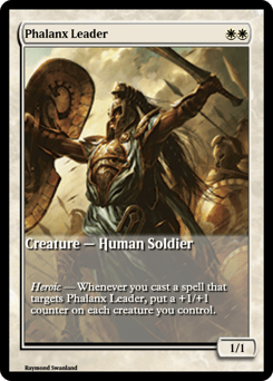 Heroic — Whenever you cast a spell that targets this creature, put a +1/+1 counter on each creature you control.