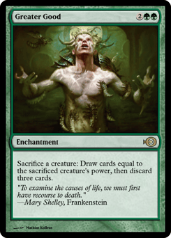 Sacrifice a creature: Draw cards equal to the sacrificed creature's power, then discard three cards.