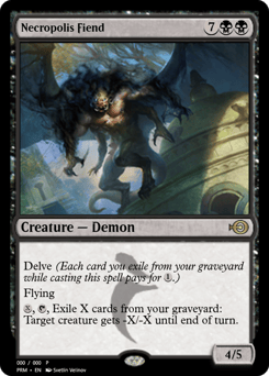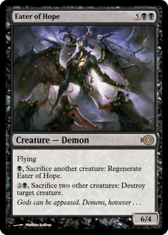 Flying {B}, Sacrifice another creature: Regenerate this creature. {2}{B}, Sacrifice two other creatures: Destroy target creature.