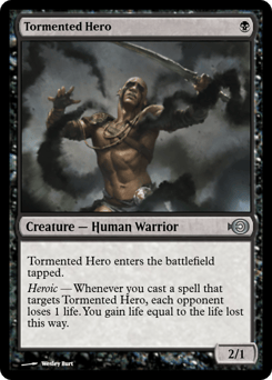 This creature enters tapped. Heroic — Whenever you cast a spell that targets this creature, each opponent loses 1 life. You gain life equal to the life lost this way.