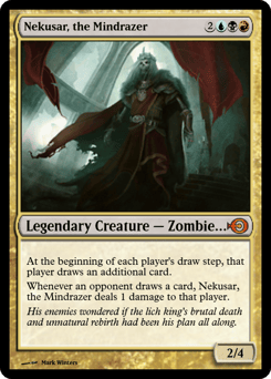 At the beginning of each player's draw step, that player draws an additional card. Whenever an opponent draws a card, Nekusar deals 1 damage to that player.