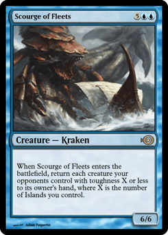When this creature enters, return each creature your opponents control with toughness X or less to its owner's hand, where X is the number of Islands you control.