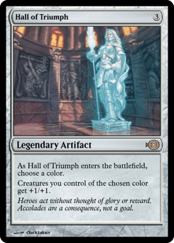 As Hall of Triumph enters, choose a color. Creatures you control of the chosen color get +1/+1.