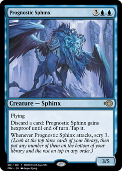 Flying Discard a card: This creature gains hexproof until end of turn. Tap it. Whenever this creature attacks, scry 3.
