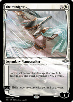 Prevent all noncombat damage that would be dealt to you and other permanents you control. [−2]: Exile target creature with power 4 or greater.