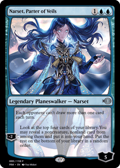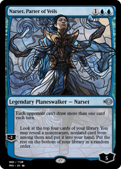 Each opponent can't draw more than one card each turn. [−2]: Look at the top four cards of your library. You may reveal a noncreature, nonland card from among them and put it into your hand. Put the rest on the bottom of your library in a random order.