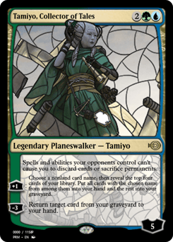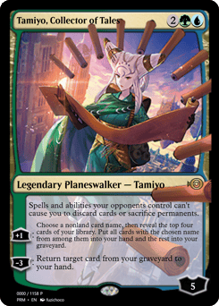 Spells and abilities your opponents control can't cause you to discard cards or sacrifice permanents. [+1]: Choose a nonland card name, then reveal the top four cards of your library. Put all cards with the chosen name from among them into your hand and the rest into your graveyard. [−3]: Return target card from your graveyard to your hand.