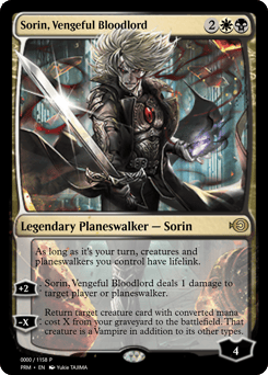 During your turn, creatures and planeswalkers you control have lifelink. [+2]: Sorin deals 1 damage to target player or planeswalker. [−X]: Return target creature card with mana value X from your graveyard to the battlefield. That creature is a Vampire in addition to its other types.