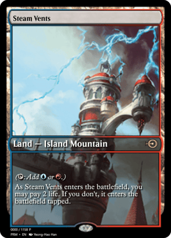 ({T}: Add {U} or {R}.) As this land enters, you may pay 2 life. If you don't, it enters tapped.