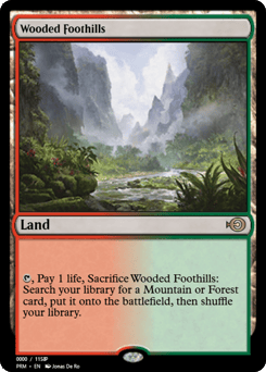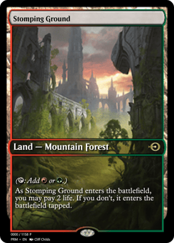 {T}, Pay 1 life, Sacrifice this land: Search your library for a Mountain or Forest card, put it onto the battlefield, then shuffle.