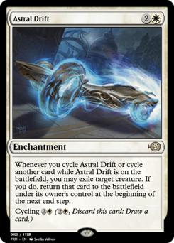 Whenever you cycle this card or cycle another card while this enchantment is on the battlefield, you may exile target creature. If you do, return that card to the battlefield under its owner's control at the beginning of the next end step. Cycling {2}{W} ({2}{W}, Discard this card: Draw a card.)