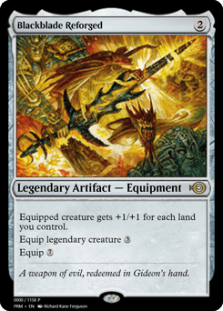 Equipped creature gets +1/+1 for each land you control. Equip legendary creature {3} Equip {7}