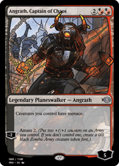 Creatures you control have menace. [−2]: Amass Zombies 2. (Put two +1/+1 counters on an Army you control. It's also a Zombie. If you don't control an Army, create a 0/0 black Zombie Army creature token first.)