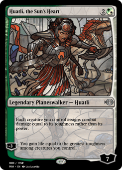 Each creature you control assigns combat damage equal to its toughness rather than its power. [−3]: You gain life equal to the greatest toughness among creatures you control.
