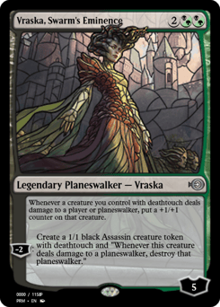 Whenever a creature you control with deathtouch deals damage to a player or planeswalker, put a +1/+1 counter on that creature. [−2]: Create a 1/1 black Assassin creature token with deathtouch and "Whenever this token deals damage to a planeswalker, destroy that planeswalker."