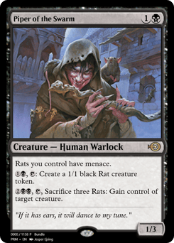 Rats you control have menace. {1}{B}, {T}: Create a 1/1 black Rat creature token. {2}{B}{B}, {T}, Sacrifice three Rats: Gain control of target creature.