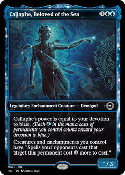 Callaphe's power is equal to your devotion to blue. (Each {U} in the mana costs of permanents you control counts toward your devotion to blue.) Creatures and enchantments you control have "Spells your opponents cast that target this permanent cost {1} more to cast."