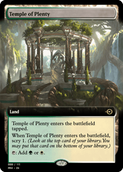 This land enters tapped. When this land enters, scry 1. (Look at the top card of your library. You may put that card on the bottom.) {T}: Add {R} or {G}.