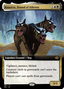 Vigilance, menace, lifelink Creature cards in graveyards can't enter the battlefield. Players can't cast spells from graveyards.
