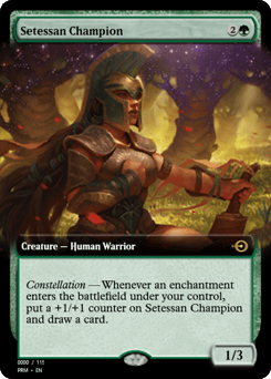 Constellation — Whenever an enchantment you control enters, put a +1/+1 counter on this creature and draw a card.