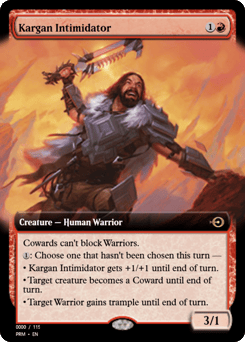 Cowards can't block Warriors. {1}: Choose one that hasn't been chosen this turn — • This creature gets +1/+1 until end of turn. • Target creature becomes a Coward until end of turn. • Target Warrior gains trample until end of turn.