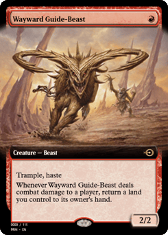 Trample, haste Whenever this creature deals combat damage to a player, return a land you control to its owner's hand.