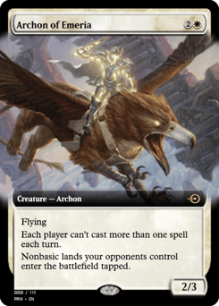 Flying Each player can't cast more than one spell each turn. Nonbasic lands your opponents control enter tapped.