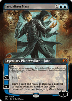 Kicker {2} When Jace enters, if Jace was kicked, create a token that's a copy of Jace, except it's not legendary and its starting loyalty is 1. [+1]: Scry 2. [0]: Draw a card and reveal it. Remove a number of loyalty counters equal to that card's mana value from Jace.