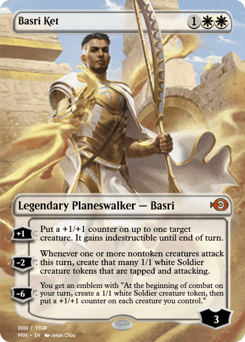 [+1]: Put a +1/+1 counter on up to one target creature. It gains indestructible until end of turn. [−2]: Whenever one or more nontoken creatures attack this turn, create that many 1/1 white Soldier creature tokens that are tapped and attacking. [−6]: You get an emblem with "At the beginning of combat on your turn, create a 1/1 white Soldier creature token, then put a +1/+1 counter on each creature you control."