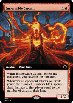 When this creature enters, you become the monarch. Whenever an opponent attacks you while you're the monarch, this creature deals damage to that player equal to the number of cards in their hand.