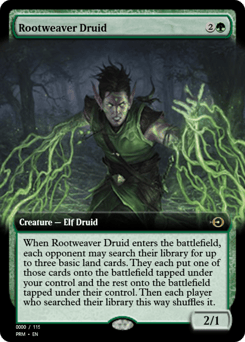When this creature enters, each opponent may search their library for up to three basic land cards. They each put one of those cards onto the battlefield tapped under your control and the rest onto the battlefield tapped under their control. Then each player who searched their library this way shuffles.