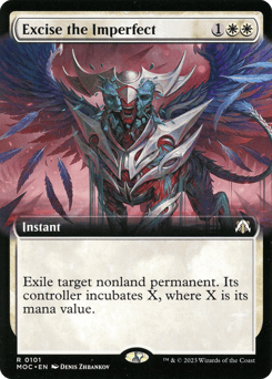 Exile target nonland permanent. Its controller incubates X, where X is its mana value. (They create an Incubator token with X +1/+1 counters on it and "{2}: Transform this token." It transforms into a 0/0 Phyrexian artifact creature.)